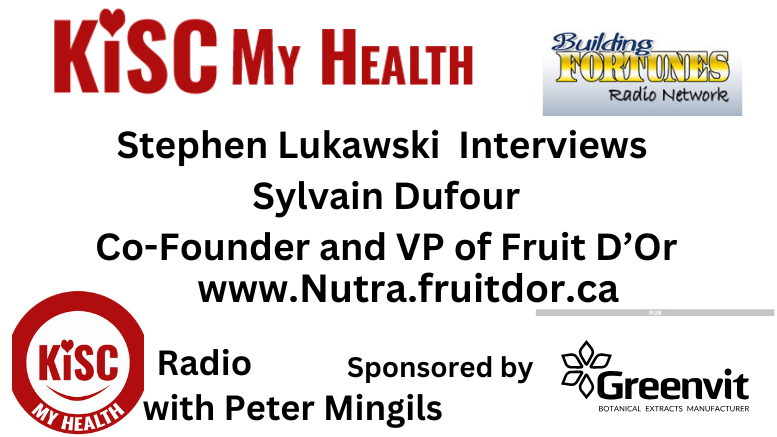 Stephen Lukawski and Fruit d’Or VP Sylvain Dufour on KISC My Health Radio with Peter Mingils on Building Fortunes Radio. KISC My Health is a special Building Fortunes Radio Network segment hosted by Captain Cran Man and Stephen Lukawski and Peter Mingils.